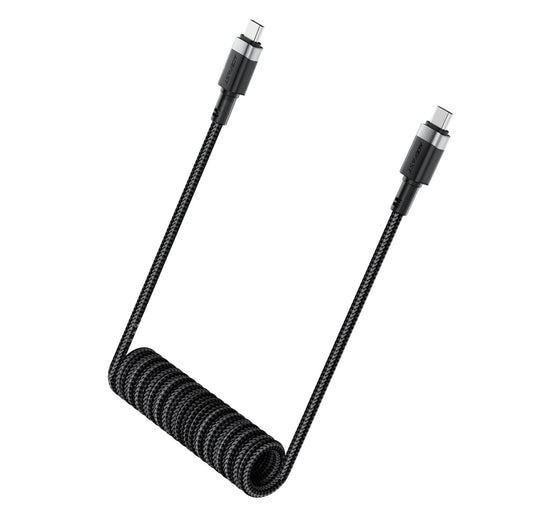 USB-C naar USB-C Kabel - Krulsnoer - Uitrekbare oplaadkabel - Universele oplaadkabel - 1.2 M - 480Mb/s - Zwart